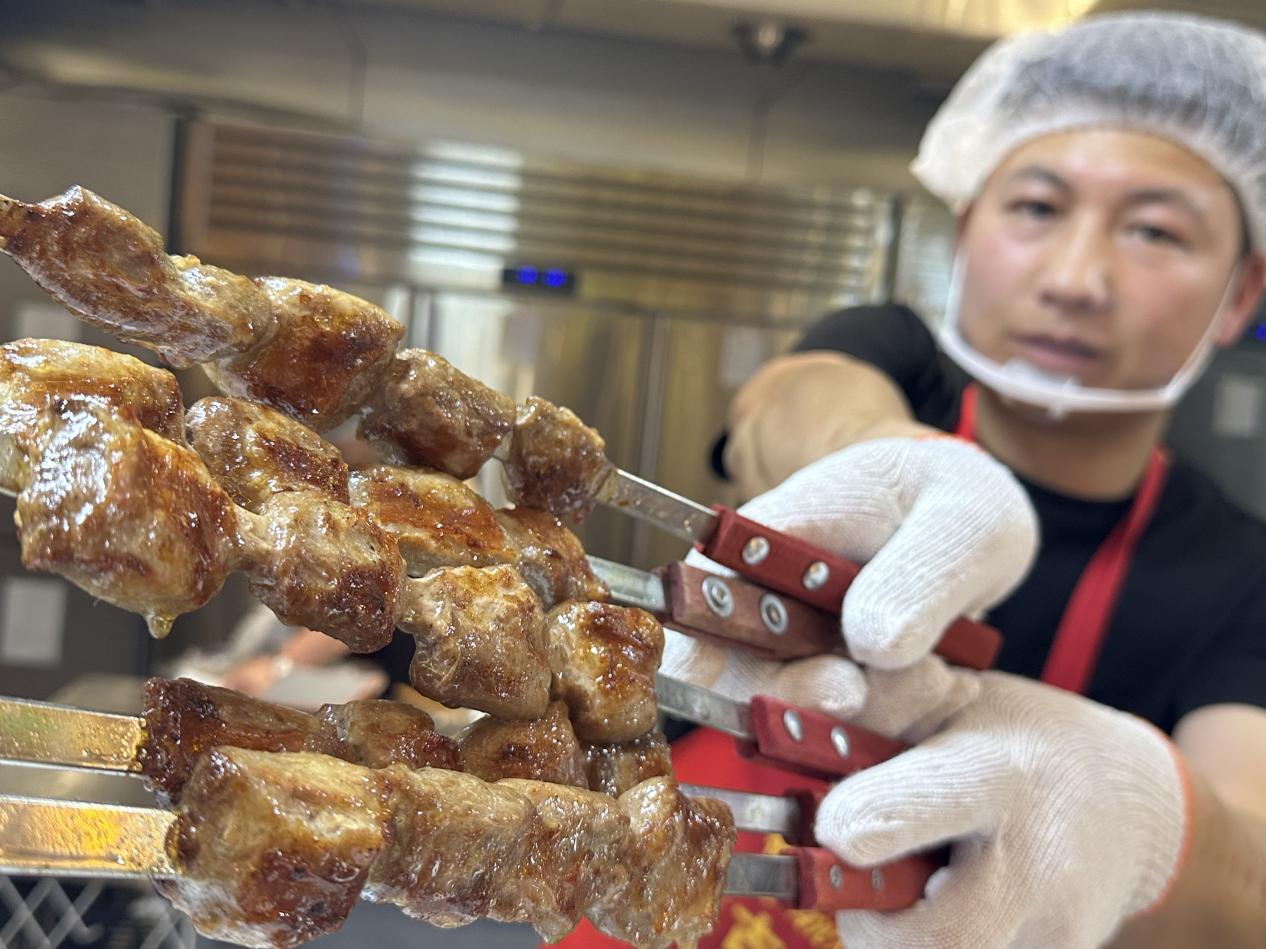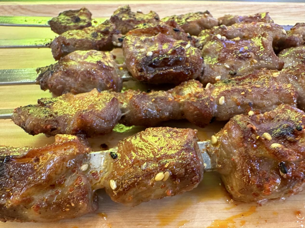 暮色降臨,綏化市青岡縣街頭的炭不二燒烤店內(nèi)早已座無虛席,滋滋冒油的大油邊在炭火上翻滾,金黃油亮的肉串被烤得滋滋作響,食客們大快朵頤。從明水一店,開到青岡二店,一路飄香。店主王安國穿梭在人群中,臉上洋溢著喜悅:“每天400多串根本不夠賣!試營業(yè)以來,店里天天爆滿,老顧客帶著新客人,都沖著這口大油邊來的。”說話間,一位熟客又推門而入,她笑著對(duì)服務(wù)員說:“老樣子,先來十串大油邊!嘗過一次就忘不了這脆皮爆汁的口感,太幸福了!”回頭客絡(luò)繹不絕。