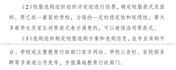 新規(guī)明確要求,學(xué)校成立的校服選購組織中,“學(xué)生和家長代表占比不得低于80%”,選購前需“征得三分之二以上家長同意”,這意味著家長在供應(yīng)商選擇、款式確定、質(zhì)量驗收等關(guān)鍵環(huán)節(jié)擁有絕對的“投票權(quán)”。更關(guān)鍵的是“不折騰學(xué)生和家長”,原已統(tǒng)一著裝的學(xué)校,若大多數(shù)學(xué)生及家長對原款式表示滿意,可以沿用原款式。選購中需公開需求、公示結(jié)果,選購后需接受家長評價。