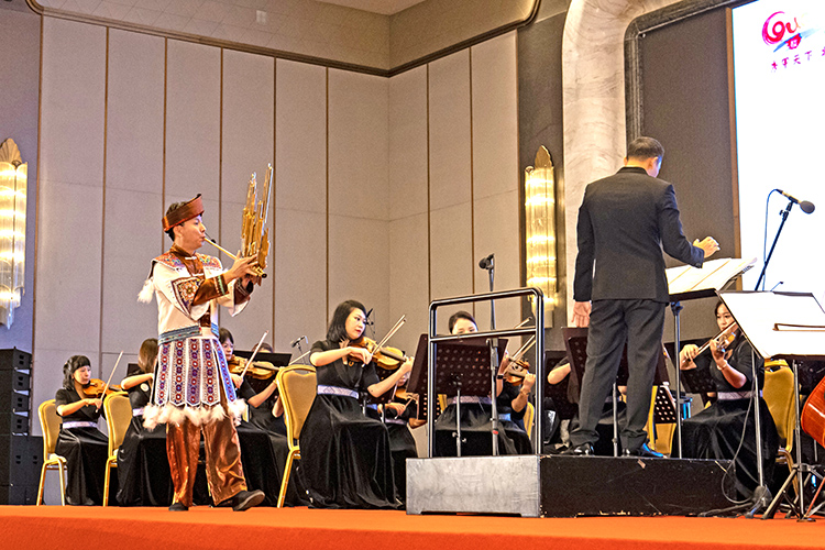 推介會(huì)在交響幻想曲《歌仙·劉三姐》中拉開(kāi)帷幕,用美妙的音樂(lè)將現(xiàn)場(chǎng)觀眾帶到了壯鄉(xiāng)山水間。蘆笙與樂(lè)隊(duì)《節(jié)日的邊寨》、歌曲《廣西尼的呀》《連心歌》等極具廣西民族風(fēng)情的旋律,將廣西各族兒女團(tuán)結(jié)奮進(jìn)的精神風(fēng)貌娓娓道來(lái)。