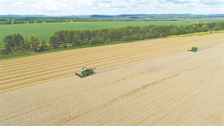 錦河農(nóng)場有限公司高寒小麥迎來收獲季。 王洪玲 金昌明攝