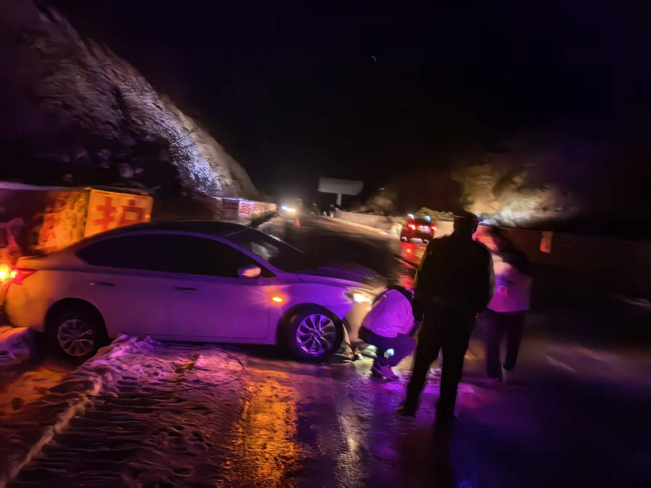 了解情況后,民警立即找來了皮卡車用拖車?yán)K反復(fù)嘗試拖拽,經(jīng)過一個小時的拖救,成功將受困車輛成功拖拽到主路。由于天色漸晚,民警建議游客到前方縣內(nèi)進(jìn)行休息調(diào)整。隨后,民警仔細(xì)檢查了車輛的輪胎、剎車等關(guān)鍵部位,確認(rèn)車輛無故障后,還耐心向游客講解了 G331 國道夜間行車的注意事項,包括提前查看天氣、控制車速、保持車距以及遇到突發(fā)情況如何正確求助等。