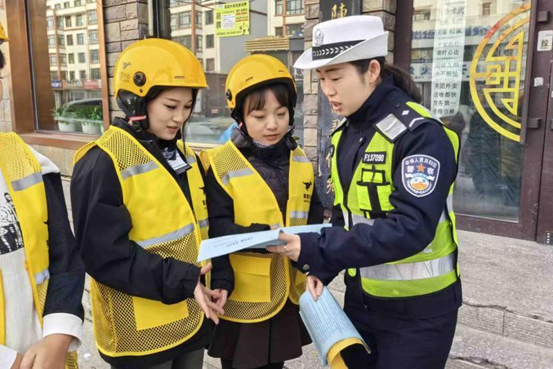活動中,民警先后走進轄區(qū)外賣企業(yè)及物流運輸企業(yè),結合轄區(qū)交通管理工作實際,緊緊圍繞當前廣大交通參與者的出行特點,通過發(fā)放宣傳資料、粘貼海報及以案釋法等方式,向企業(yè)負責人及駕駛人詳細講解雨雪天氣出行交通安全知識及酒駕醉駕、無牌無證、超員超載、不佩戴安全頭盔、不系安全帶等違法行為的嚴重危害和后果,同時現(xiàn)場警示交通參與者:“摒棄僥幸心理,從細節(jié)養(yǎng)成良好駕駛習慣,緊繃交通安全弦,時刻守住出行安全防線。”