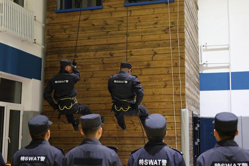 嚴(yán)苛訓(xùn)練礪精兵,汗水鑄就戰(zhàn)斗力。在戰(zhàn)術(shù)訓(xùn)練現(xiàn)場,隨著指揮員一聲令下,隊(duì)員們迅速結(jié)成戰(zhàn)斗小組,交替掩護(hù)、快速推進(jìn),動作連貫流暢。在徒手防控科目中,隊(duì)員們反復(fù)練習(xí)擒敵拳、控制術(shù)等技能,每一個動作都追求標(biāo)準(zhǔn)規(guī)范。此外,針對冬季邊境地區(qū)夜長晝短,反恐與巡特警大隊(duì)還專門開展夜間訓(xùn)練,隊(duì)員們在夜間環(huán)境中搭建臨時帳篷并展開夜間搜索,進(jìn)一步提升了夜間的應(yīng)急處突能力。