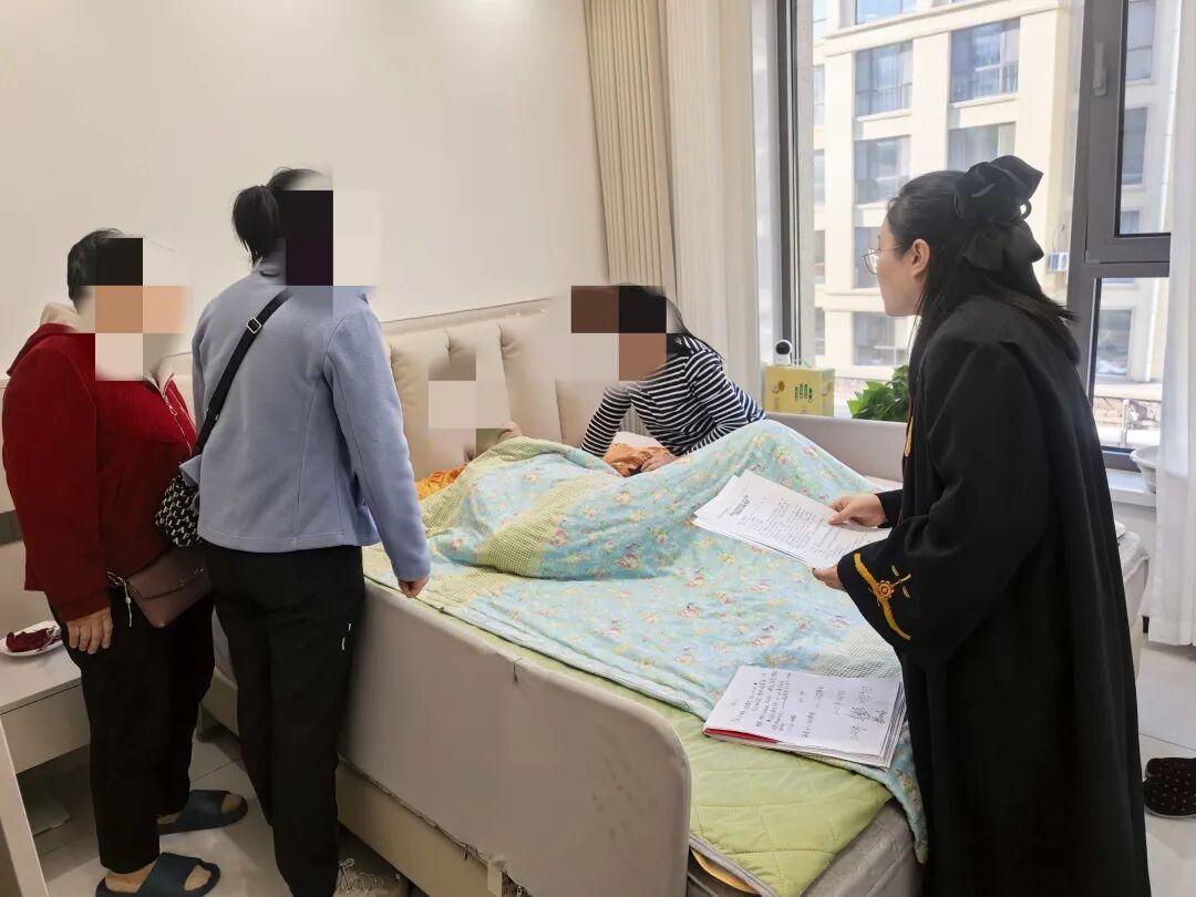 事情要從當(dāng)事人張爺爺?shù)奶厥馇闆r說(shuō)起。張爺爺行動(dòng)不便、長(zhǎng)期臥床,根本無(wú)法到法院參與庭審,得知這一情況,民事審判庭法官宋艷波當(dāng)即表示:“案情雖不復(fù)雜,但司法服務(wù)絕不能打折扣。我們不僅要把法庭‘搬’到老人床邊,更要把調(diào)解工作做到當(dāng)事人的心坎里。”