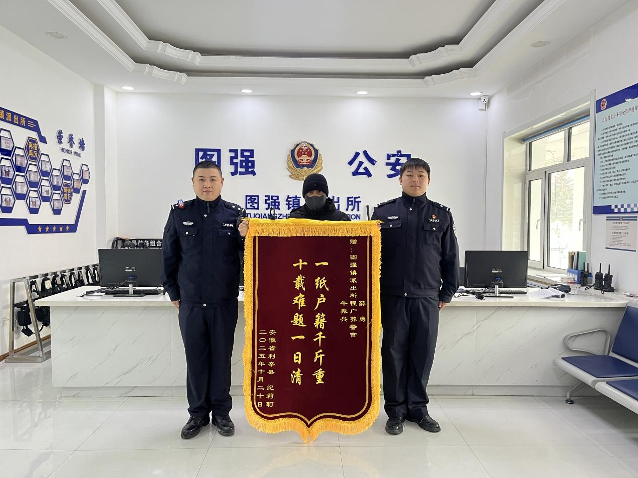 黑龍江經(jīng)濟(jì)網(wǎng)訊(顧蘭)“一紙戶籍千斤重,十載難題一日清”,這面錦旗從南國水鄉(xiāng)利辛,到北國邊陲大興安嶺圖強(qiáng)林業(yè)局,跨越了2200多公里的山河,在這個(gè)冬寒漸深的季節(jié),圖強(qiáng)警方用行動(dòng)證明溫暖從不因距離而褪色,為民服務(wù)的初心始終熠熠生輝。