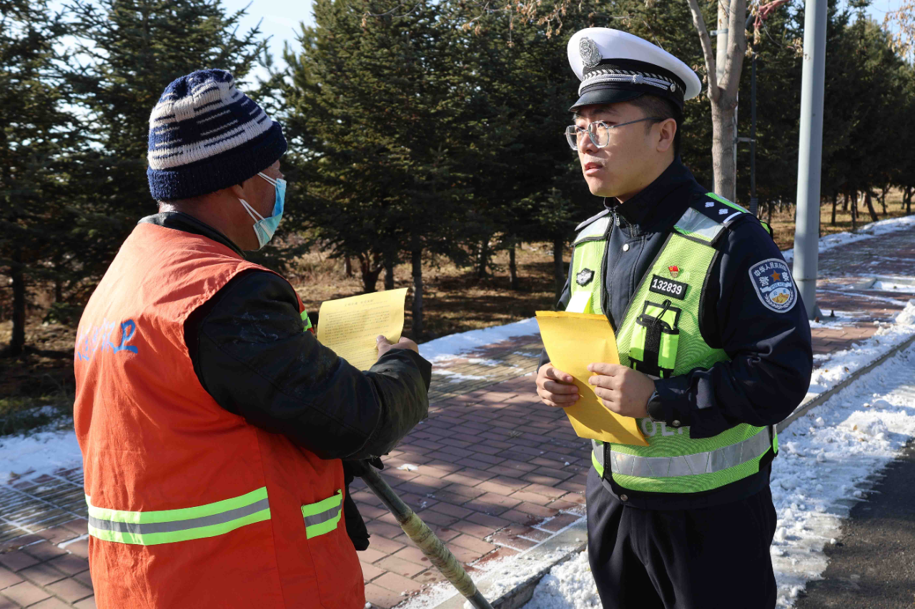 同時,通過粘貼海報、發(fā)放宣傳資料及宣傳品等形式,用通俗易懂的語言向環(huán)衛(wèi)工人講解酒駕醉駕、闖紅燈、逆向行駛、隨意停車、隨意橫穿馬路、不走人行道和斑馬線及不戴安全頭盔等交通違法行為帶來的嚴重危害及冬季安全出行注意事項,要求廣大環(huán)衛(wèi)工人務必要提高思想認識,牢固樹立“交通安全無小事”的責任意識,在作業(yè)時務必穿戴反光衣,攜帶反光標識牌,嚴格落實安全防護措施,克服麻痹大意思想,時刻繃緊安全弦,不斷增強自我保護意識,最大限度預防和減少道路交通事故發(fā)生。