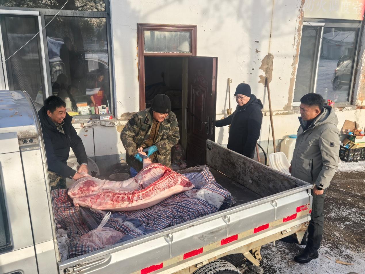 “冬季深山作業(yè),職工的御寒保暖和飲食保障是我們最牽掛的事?!背焙恿謭鍪冀K堅持“職工的‘心上事’就是林場的‘要緊事’”理念,提前與各作業(yè)組精準(zhǔn)對接,深入了解一線實際困難與需求,針對性籌備慰問物資。深入冬季營林生產(chǎn)作業(yè)點,開展歲末一線慰問活動,慰問車隊滿載 390 斤豬肉、新鮮水果、各類蔬菜、防寒棉衣、保暖手套等冬季防護(hù)用品和生活物資。抵達(dá)作業(yè)點后,慰問組詳細(xì)查看了臨時板房的取暖設(shè)備運行、食宿環(huán)境保障等情況,仔細(xì)檢查供暖管線、消防設(shè)施等安全隱患點,確保冬季生產(chǎn)生活安全?!耙归g宿舍溫度能達(dá)到多少?”、“日常食材儲存是否方便”,詢問大家的工作生活狀況,傾聽職工訴求。針對長期駐守作業(yè)點可能出現(xiàn)的食材新鮮度不足問題,林場黨支部副書記表示,“從下周起,定期配送新鮮蔬菜,保障大家營養(yǎng)均衡,讓大家吃得放心、干得舒心?!睜I林副場長圍繞冬季營林作業(yè)規(guī)范、機(jī)械設(shè)備防寒維護(hù)等內(nèi)容開展專業(yè)指導(dǎo),提醒隊員們嚴(yán)守安全生產(chǎn)規(guī)程,做好防寒防凍措施,確保生產(chǎn)安全與作業(yè)質(zhì)量雙達(dá)標(biāo)。