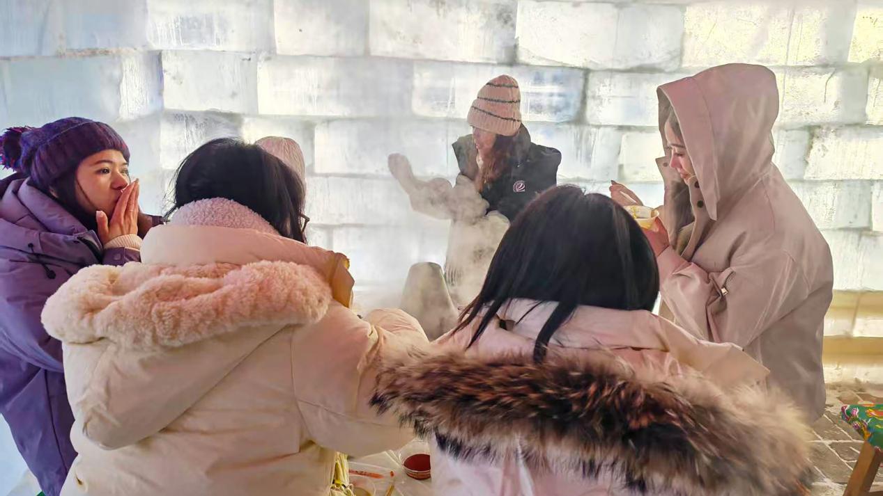 最受游客追捧的冰屋火鍋體驗(yàn),今年在味覺與感官雙重享受上再升級(jí)。冰屋內(nèi)溫度保持在零下30℃左右,卻絲毫不影響食客們的熱情,80個(gè)餐位時(shí)常座無虛席。林場(chǎng)精選大興安嶺本地鮮切羊肉、林下鮮蔬等特色食材,搭配地道東北銅鍋炭火,讓游客在極寒環(huán)境中品味熱辣鮮香,“冰火兩重天”的極致體驗(yàn)直擊味蕾與身心。