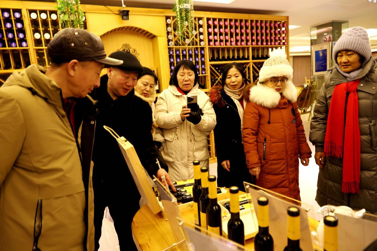 黑龍江省詩詞協(xié)會采風團成員在北極冰藍莓酒莊了解酒文化和酒品(王力 攝)