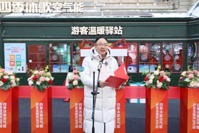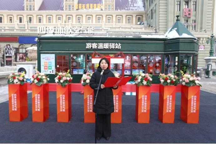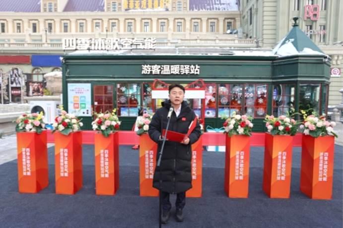 共青團哈爾濱市委副書記徐翎致辭時指出,哈爾濱以“世界冰雪旅游卓越城市”之姿驚艷全球,這一火熱盛況背后,也讓四季沐歌集團連續(xù)三年傾力打造游客溫暖驛站的堅守與付出,收獲了高度肯定,企業(yè)以科技暖意驅(qū)散凜冬嚴寒、用清潔能源護航八方游客、以“雙碳”使命點亮城市溫度的責(zé)任擔當更贏得社會廣泛贊許。她表示,團市委將以游客溫暖驛站為紐帶,廣泛匯聚青春動能和社會力量,為驛站建設(shè)添磚加瓦,也真誠呼吁各界持續(xù)關(guān)注溫暖驛站發(fā)展、支持哈爾濱青年發(fā)展型城市建設(shè),攜手為冰城高質(zhì)量振興注入青春動能。
