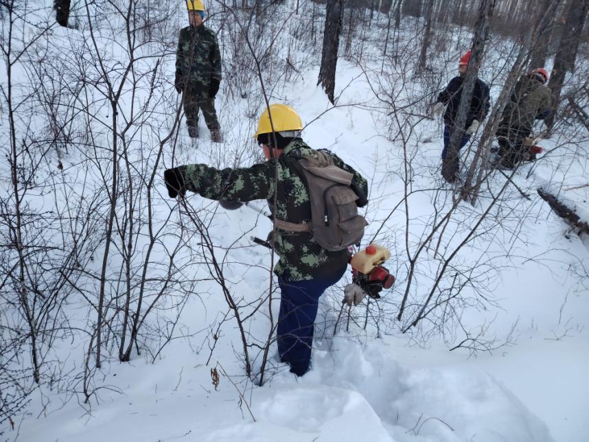 規(guī)范操作不松懈,筑牢安全“防護墻”。在各營林作業(yè)現(xiàn)場,寒風凜冽卻擋不住職工們的工作熱情。大家嚴格遵守冬季營林作業(yè)規(guī)程,統(tǒng)一佩戴安全帽穿梭在林間,有條不紊地開展林木修枝、病腐木清理、林地撫育等工作。油鋸手嚴格執(zhí)行“先檢查、再啟動、穩(wěn)操作”的流程,精準把控作業(yè)角度;撫育隊員踩著厚雪,手持工具對林間枯死木、被壓木及對目的樹種生長存在影響的進行有序清理、歸堆。從器械檢查到流程落實,每一個環(huán)節(jié)都嚴謹規(guī)范,安全帽上的反光條在皚皚白雪中格外醒目,成為林海間一道守護安全的風景線。