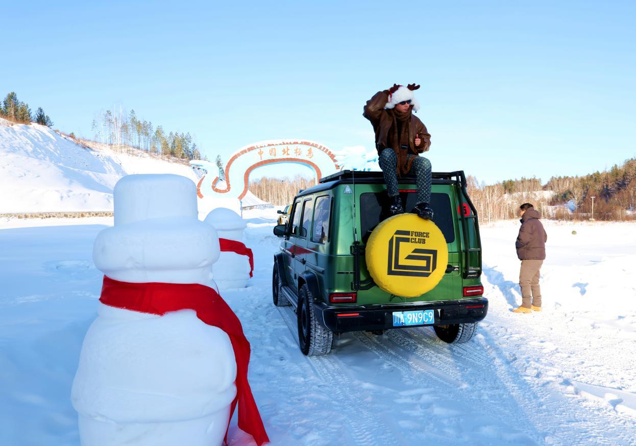 當(dāng)日中午,隨著車隊(duì)緩緩駛?cè)氡睒O島景區(qū)南門,美麗的雪地廣場(chǎng)瞬間被熱情點(diǎn)燃。游客們紛紛走下車,不顧零下數(shù)十度的嚴(yán)寒,或在松軟的雪地上玩起汽車漂移,或與雪人合影留念,或揚(yáng)起漫天雪花享受雪的輕撫,汽車馬達(dá)的轟鳴與歡聲笑語(yǔ)交織回蕩,讓這片銀裝素裹的天地化作歡樂(lè)的海洋。