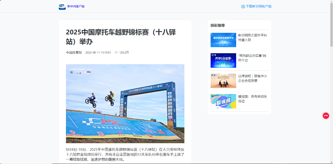 ——主題宣傳聲勢強勁,上央媒、亮品牌。聚焦生態(tài)建設、產業(yè)發(fā)展、先進典型等,深挖工作亮點,全媒體發(fā)稿量超3800篇,其中國家級媒體310余篇、省級媒體270余篇。《2025中國摩托車越野錦標賽舉辦》《小熊下樹!哎喲喲下得挺快》等作品登上央視新聞、新華社、光明網、學習強國、中國綠色時報等國家級平臺;2025中國摩托車越野錦標賽、文藝演出等活動通過新華社現(xiàn)場云等平臺直播,總點擊量超300萬次,“十八驛站”知名度與美譽度顯著提升。