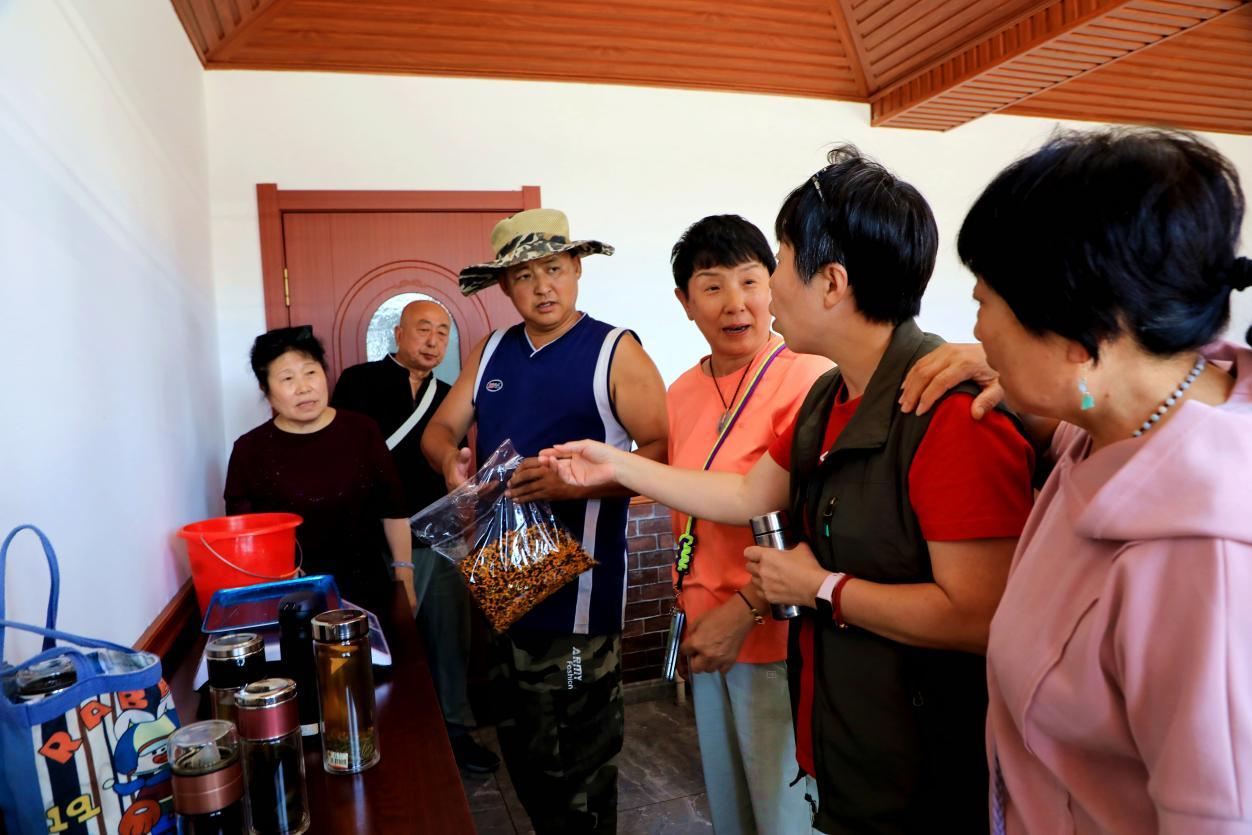 龍河林場(chǎng)職工向游客銷售林下產(chǎn)品(王力 攝)