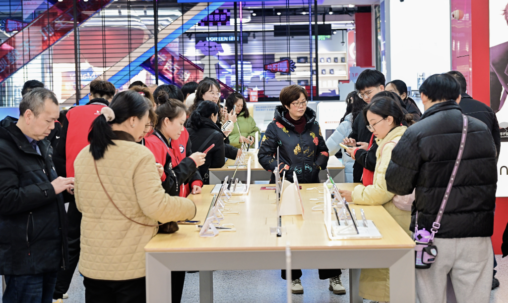 ??2026年“新國補”落地,消費者在重慶京東MALL選購手機。(受訪者供圖)