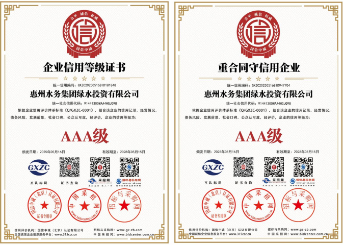 同期,綠水公司順利通過國信中誠(北京)認(rèn)證機(jī)構(gòu)的嚴(yán)格評審,成功榮獲AAA級信用企業(yè)、AAA級企業(yè)資信等級等10項權(quán)威認(rèn)證。這一系列榮譽(yù)的獲得,標(biāo)志著綠水公司在誠信經(jīng)營、社會責(zé)任及綜合競爭力方面獲得充分認(rèn)可。