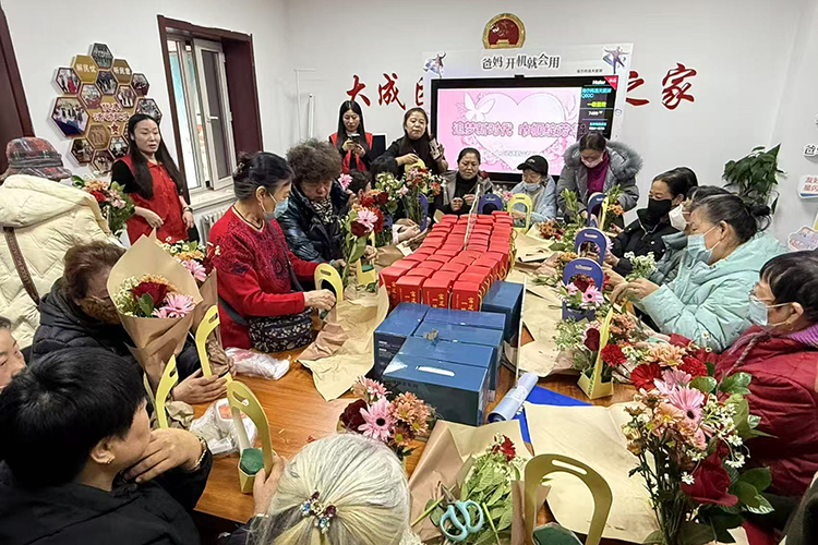 哈市南崗區(qū)大成街道新吉社區(qū)開(kāi)展“情暖三月·花漾巾幗”主題插花活動(dòng)